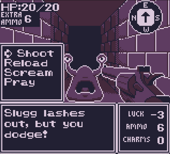 This is super impressive! The first person perspective is hard to do at gameboy limitations and this looks great. The enemy designs are very cool, the atmosphere is great and creepy - I love how the player talks to themselves, helps sell the atmosphere!